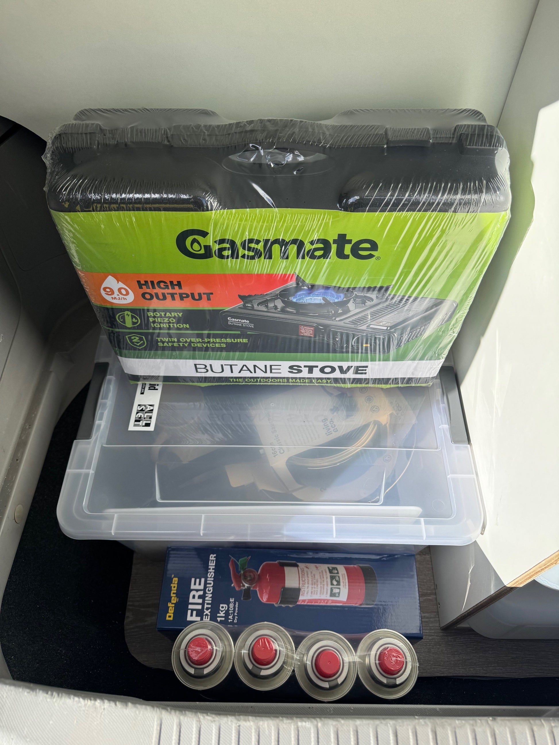 Inside, you’ll find everything you need: basic cooking gear, a comfy duvet with pillows, plus camping chairs and a foldable table for those long evenings under the stars.
