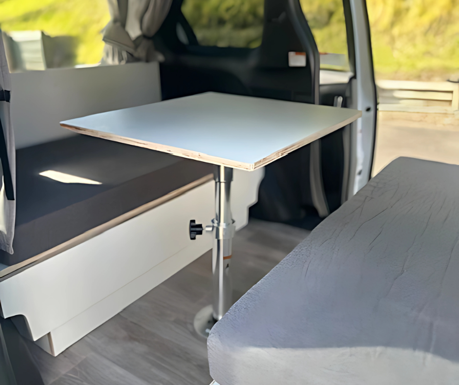 This spacious and roomy van gives you all the storage you need for extra luggage and gear. With soft pillows and a cozy duvet, sleeping inside feels like resting on clouds after a day of adventure.