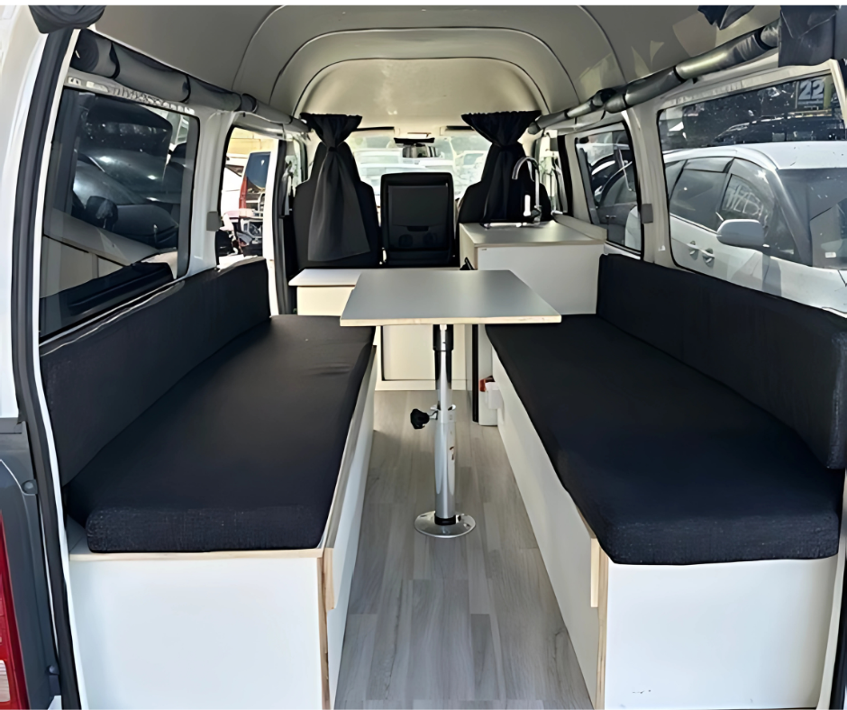 The Toyota Hiace Campervan is spacious, reliable, and designed for travellers who want comfort on the road. With generous headroom and a smart conversion, it’s perfect for couples, friends, or solo adventurers.